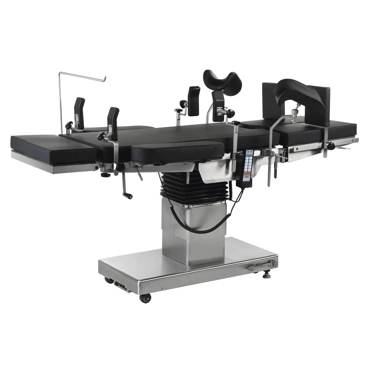 La Mesa Quirúrgica DLA/ET-300C tiene un tablero extra ancho, con deslizamiento horizontal largo que puede ser adecuado tanto para rayos X como para uso con arco en C. Control remoto micro táctil adoptado que permite ajustes flexibles y suaves en la placa de la cabeza, la placa trasera y la placa del asiento